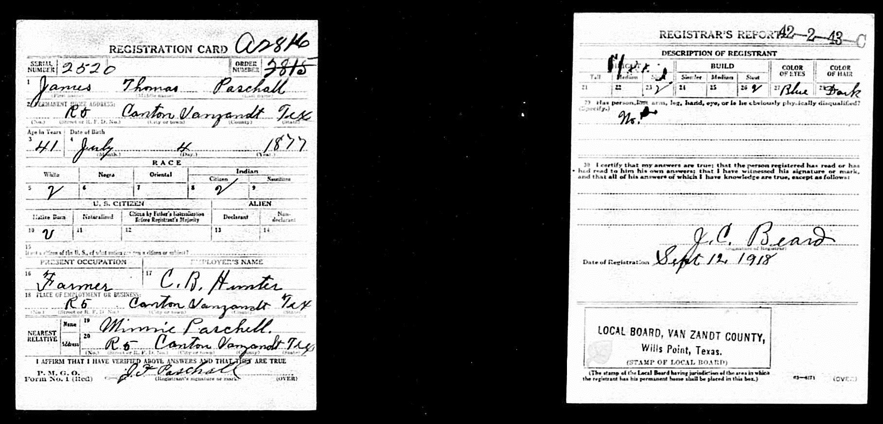 James Curtis PASCHALL was born on 18 Jun 1892 in , Texas. He died on 20 Mar 1962 in Orange, California.[Notes]