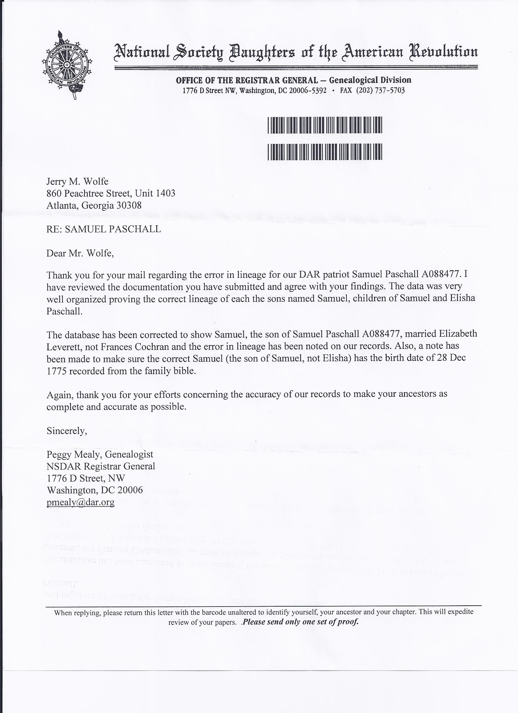 DAR letter - changes in Identification
