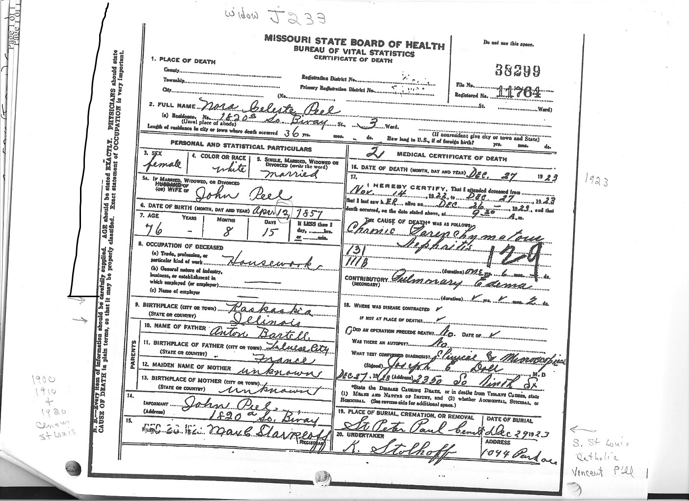 death cert Nora Celeste Peel