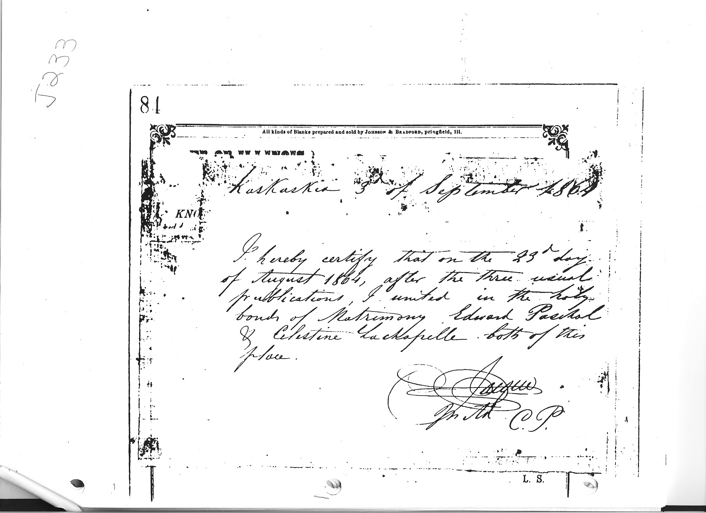 marr :Edward to widow, Celestine LaChappale